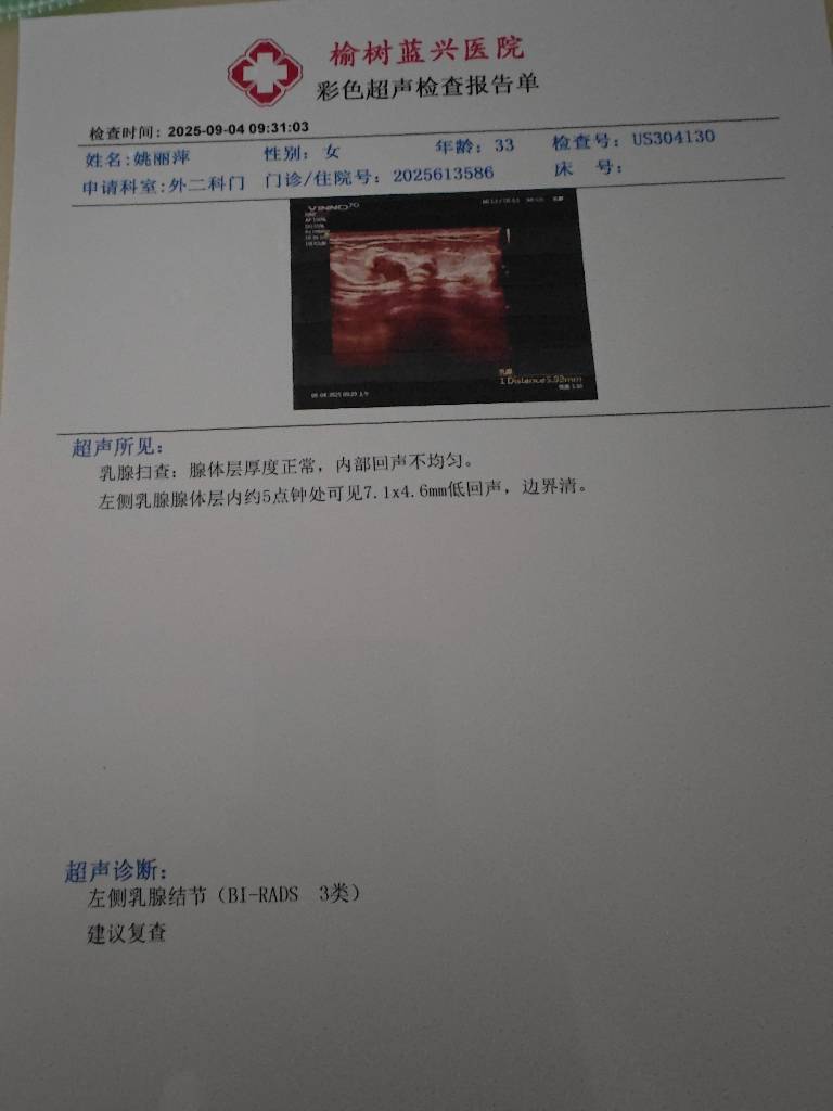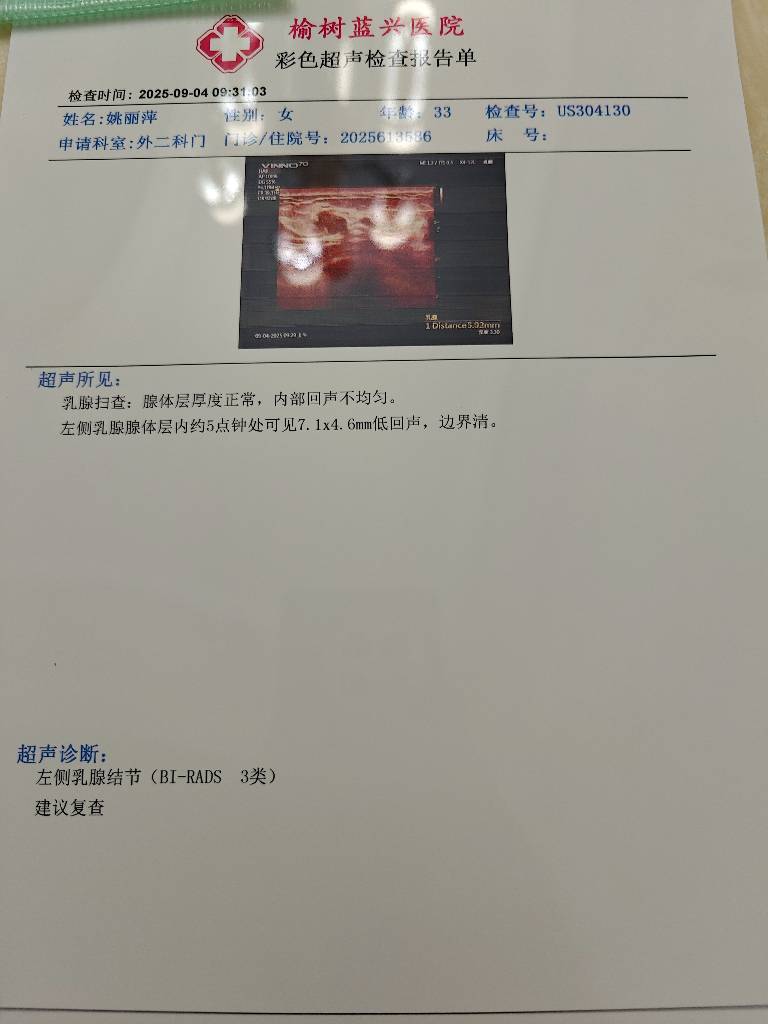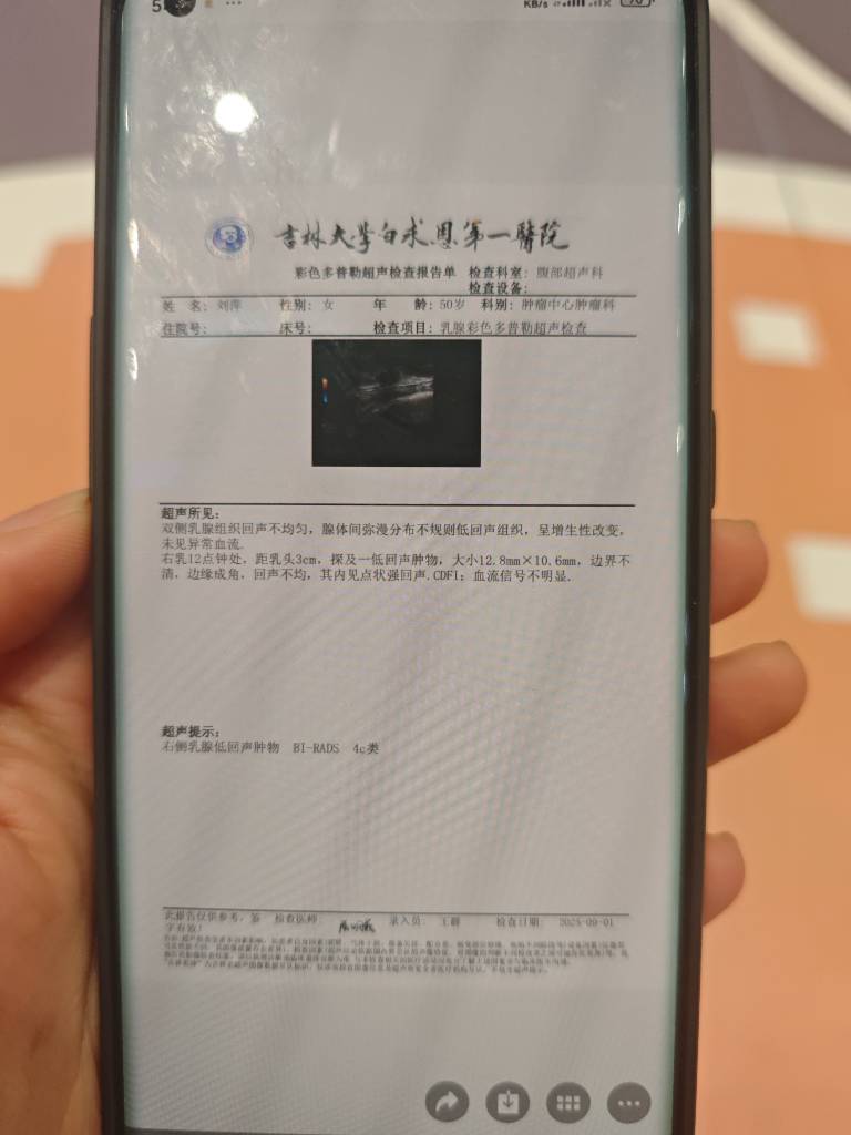 - 【就诊原因】发现乳房异常-检查发现