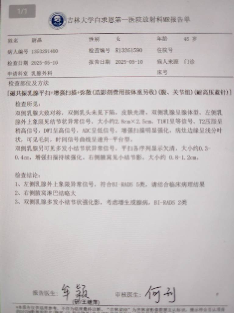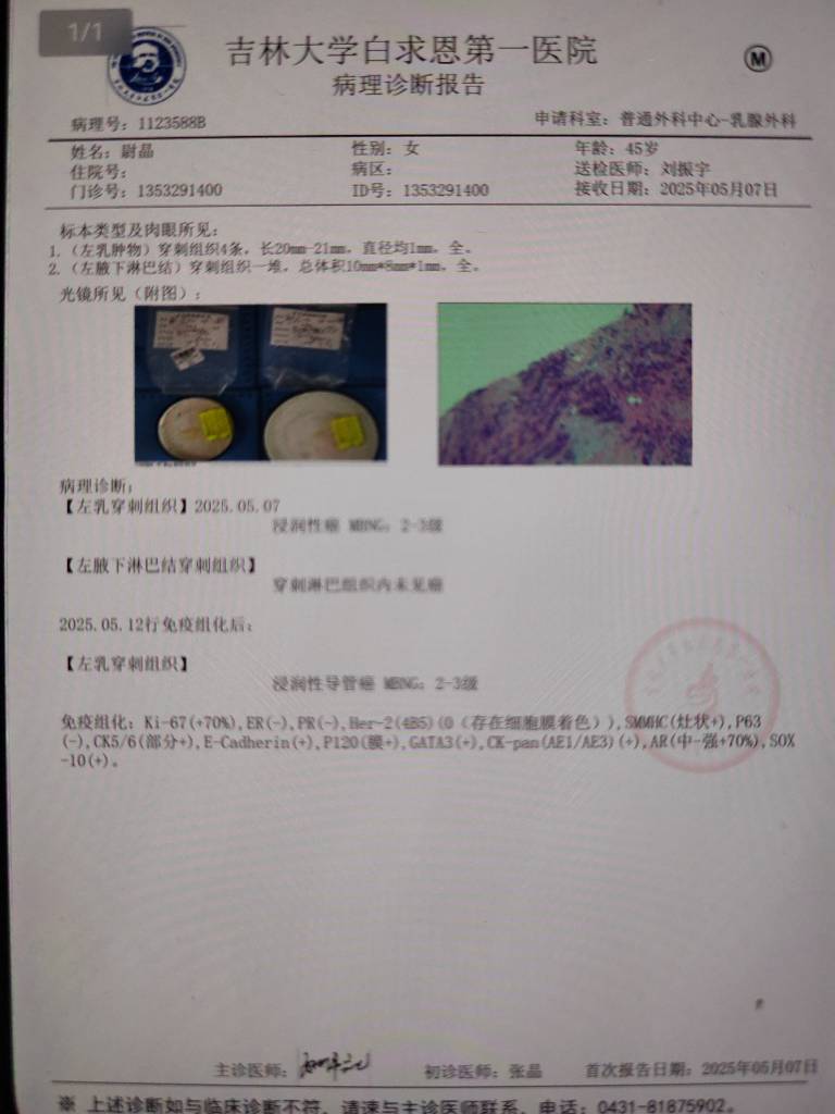 【就诊原因】发现乳房异常-已有病理
