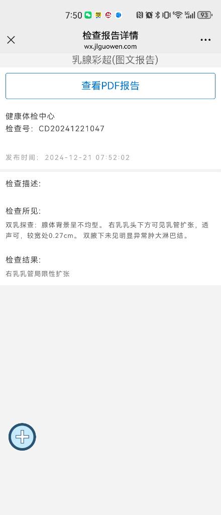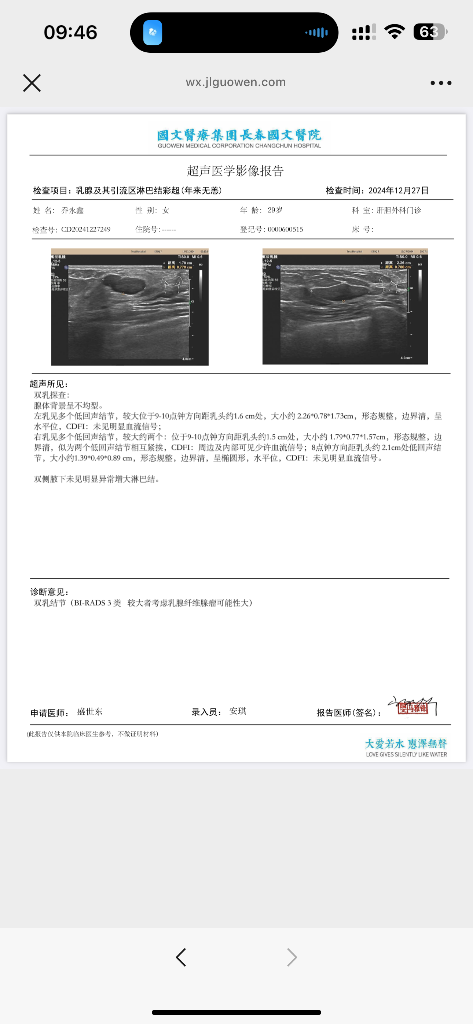 【就诊原因】未发现乳房异常(要求乳房专科检查)