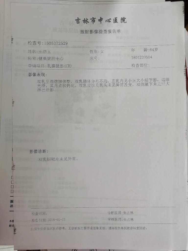 【就诊原因】未发现乳房异常(要求乳房专科检查)