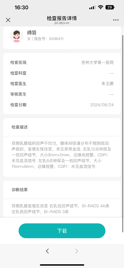 【相关检查】乳腺彩超-本院-乳腺钼靶