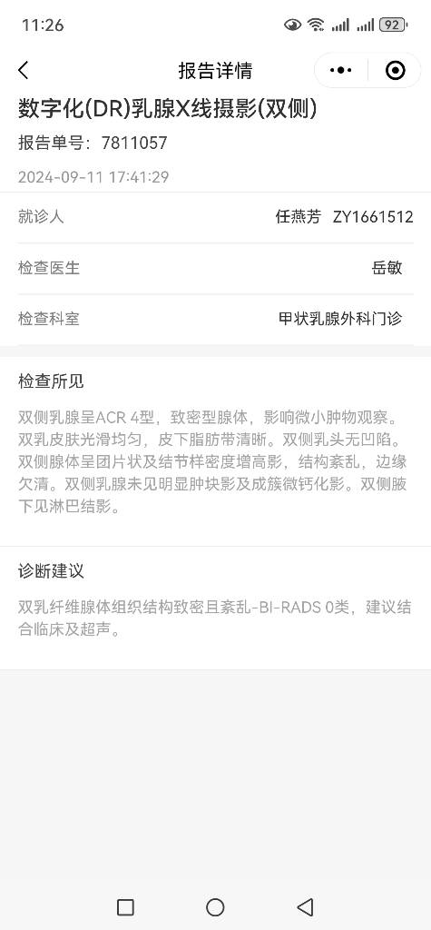 【就诊原因】未发现乳房异常(要求乳房专科检查)