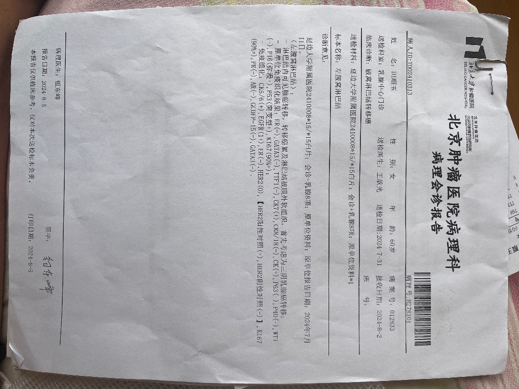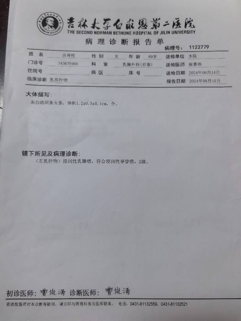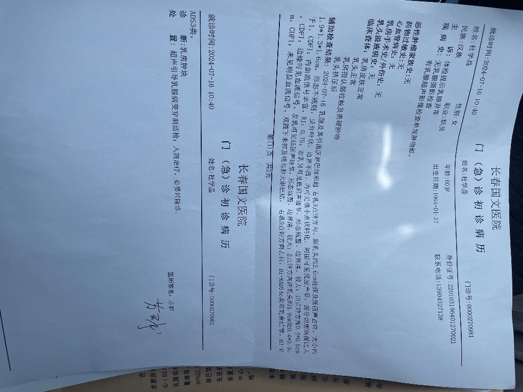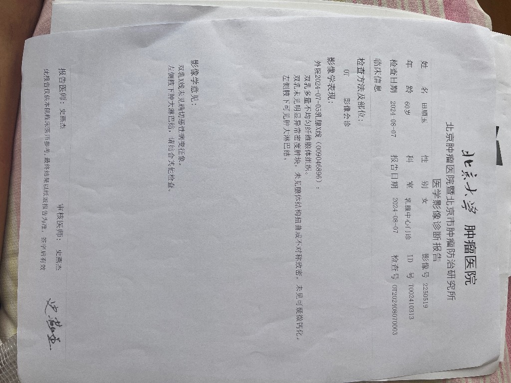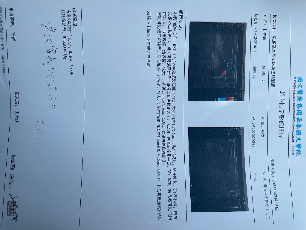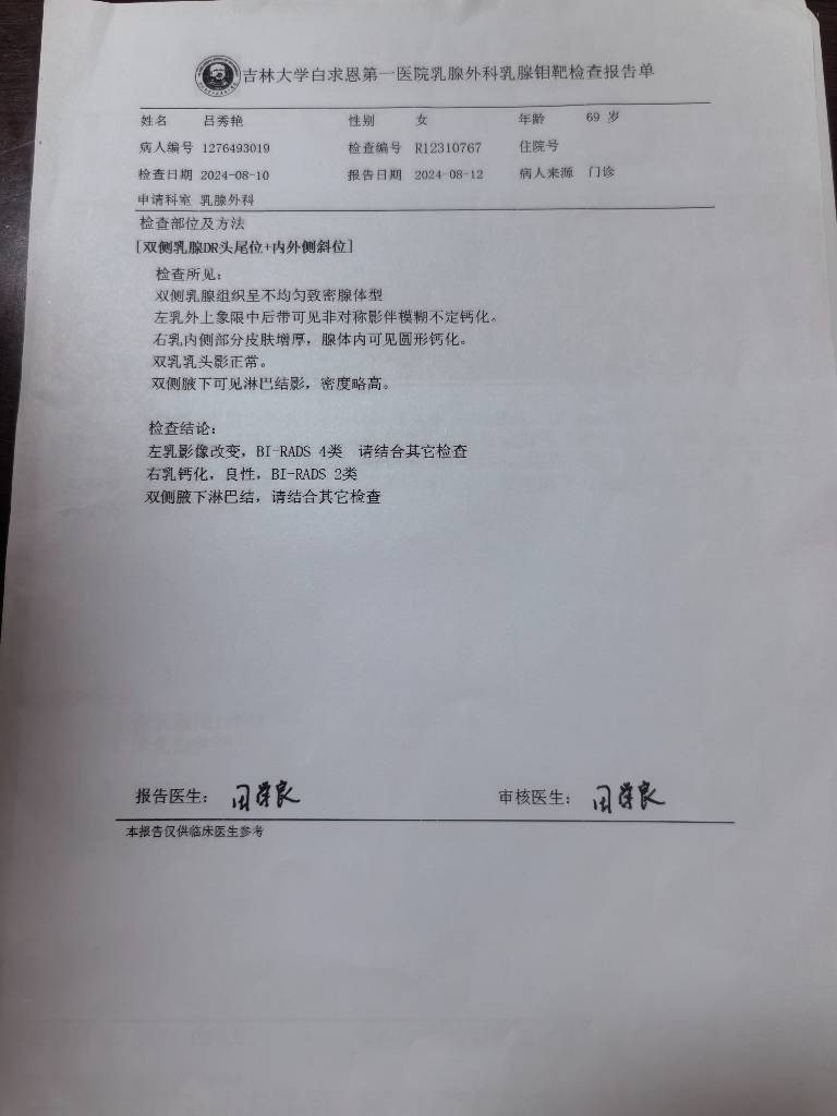 【相关检查】乳腺彩超-本院-乳腺钼靶-病理报告