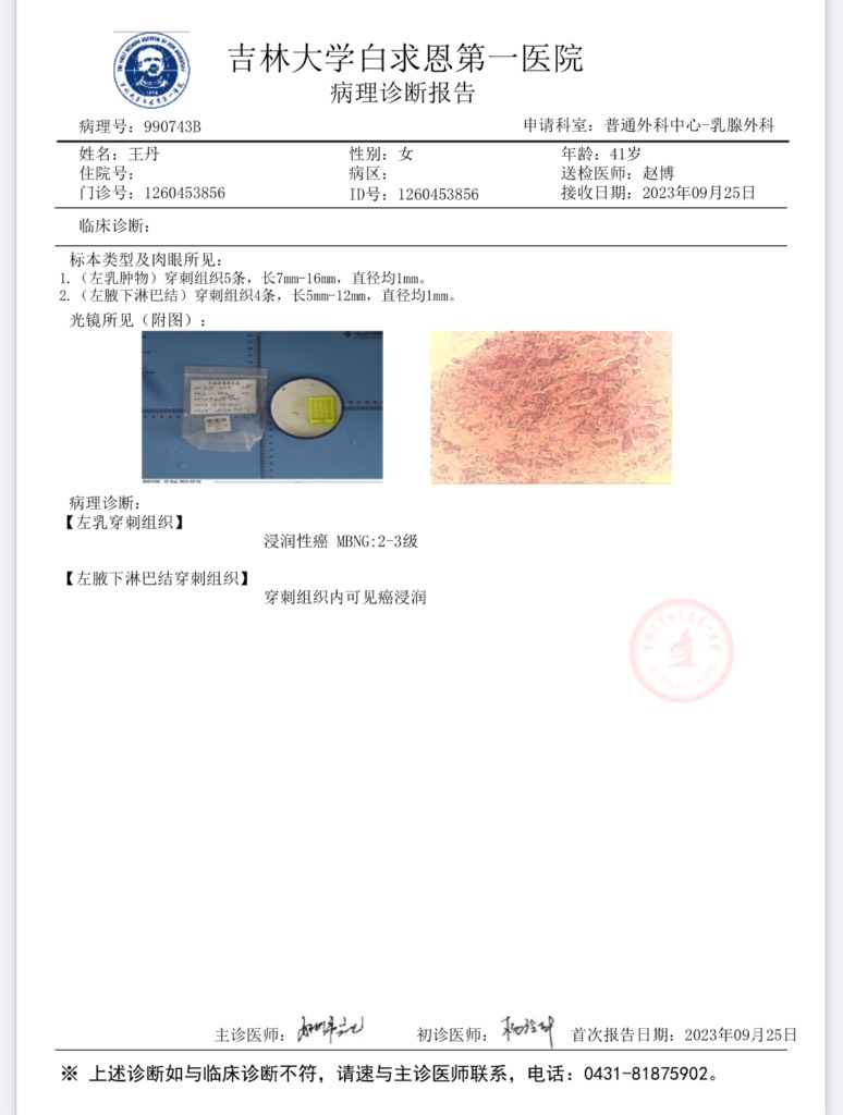 【就诊原因】发现乳房异常-已有病理