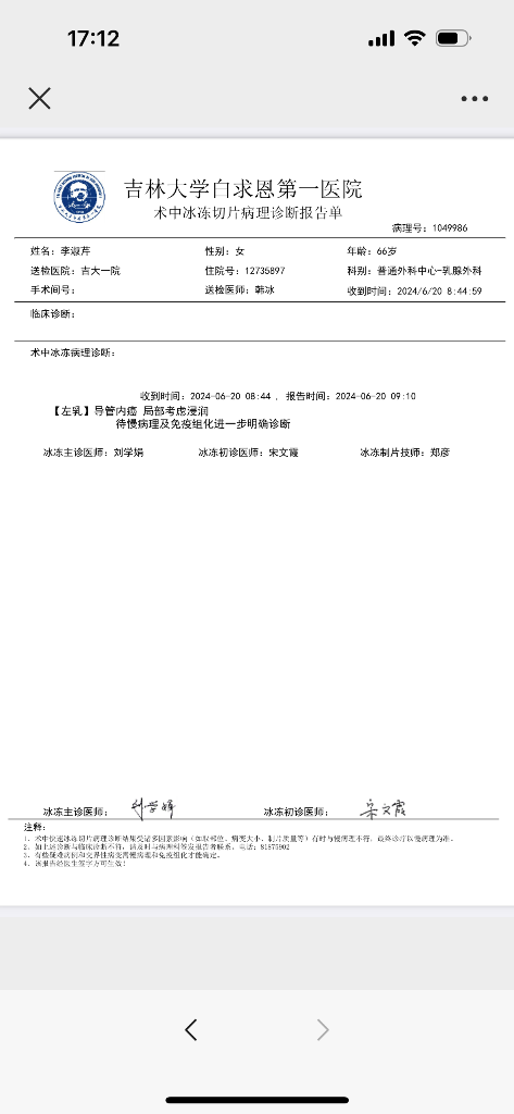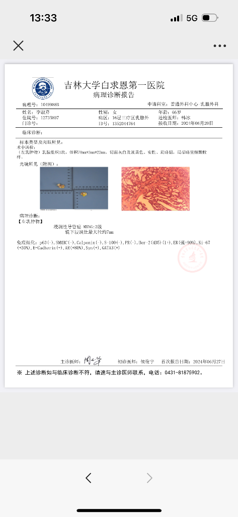 【就诊原因】发现乳房异常-已有病理