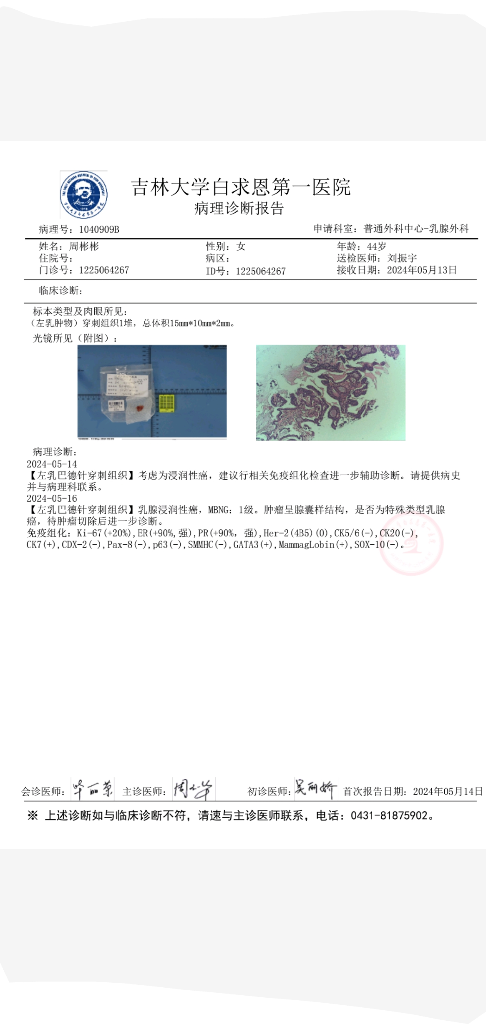 【相关检查】乳腺彩超-外院-病理报告