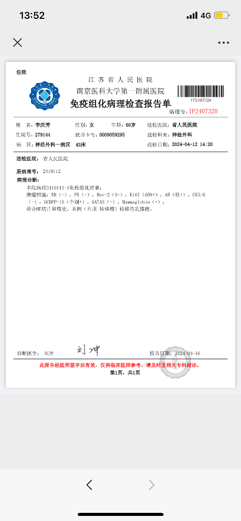 【就诊原因】发现乳房异常-已有病理