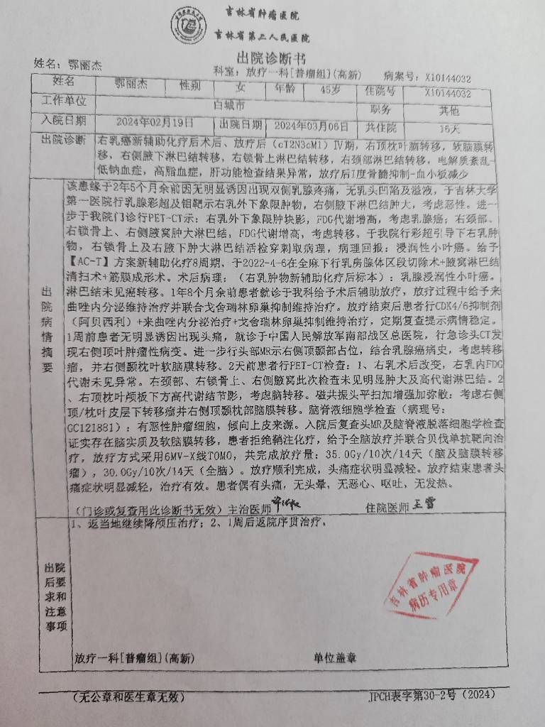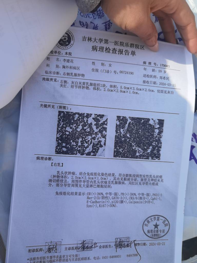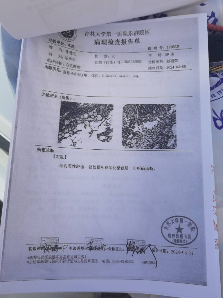 【就诊原因】发现乳房异常-已有病理