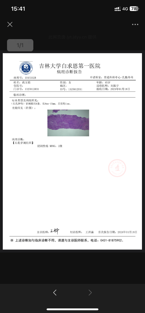 【就诊原因】发现乳房异常-已有病理