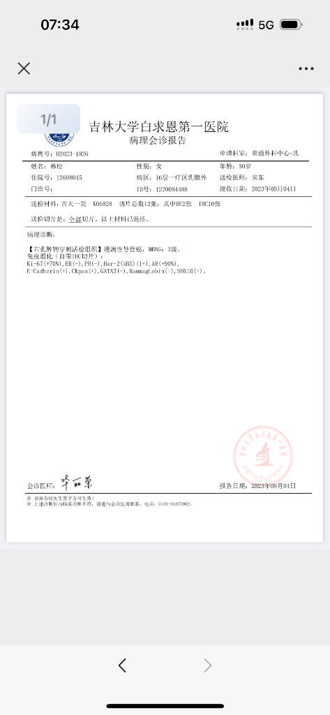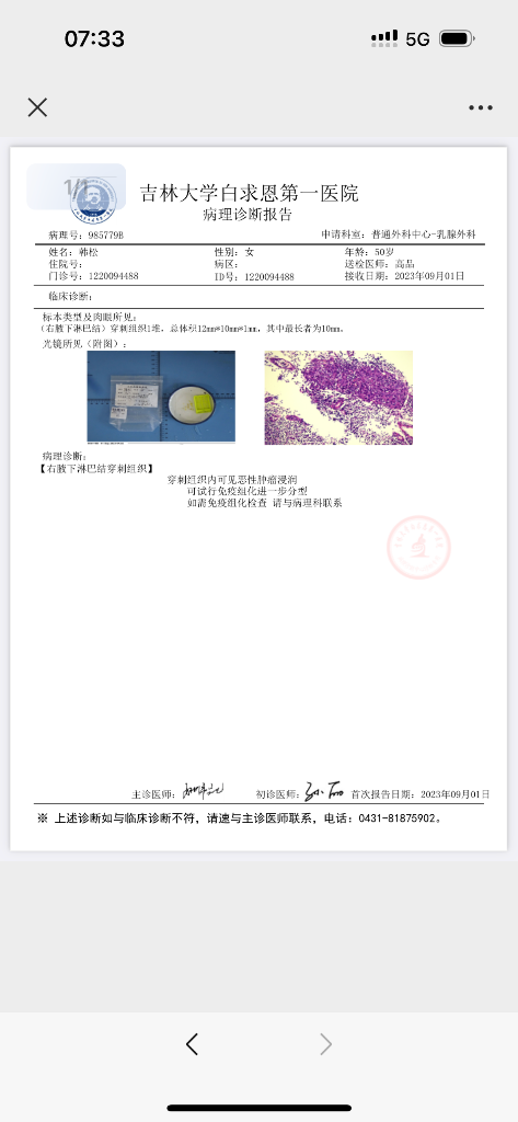 【相关检查】乳腺彩超-外院-病理报告
