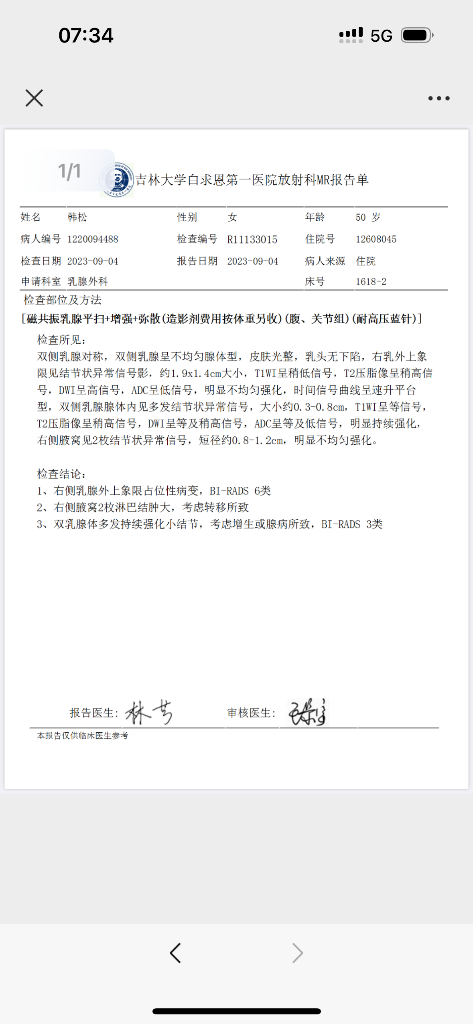 【就诊原因】发现乳房异常-已有病理