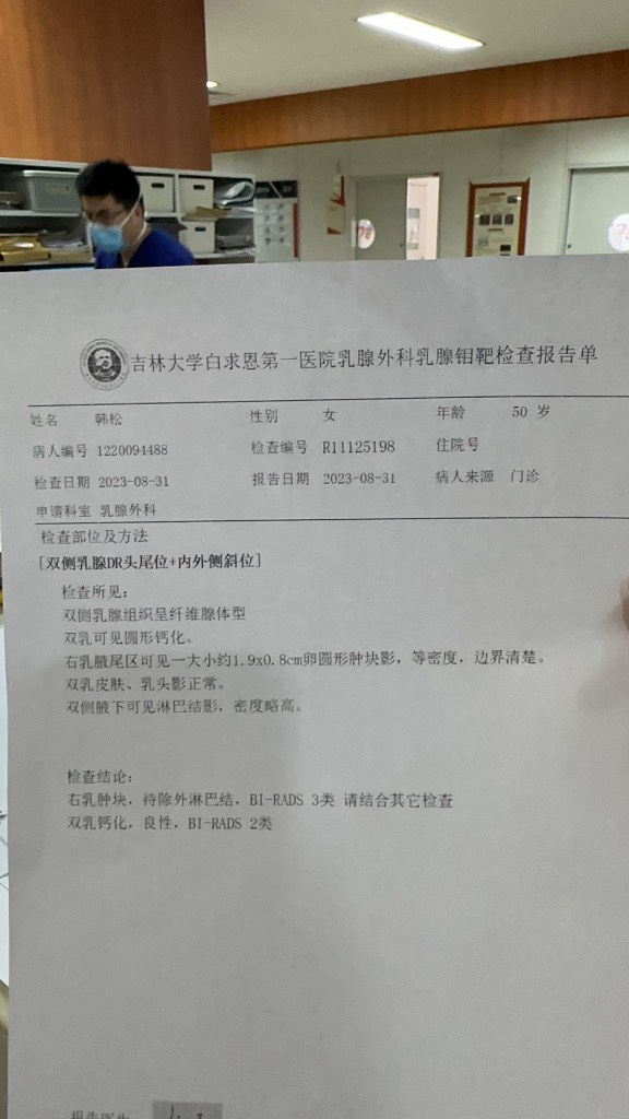 【就诊原因】发现乳房异常-检查发现