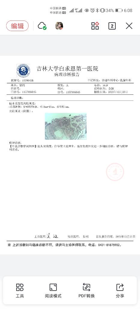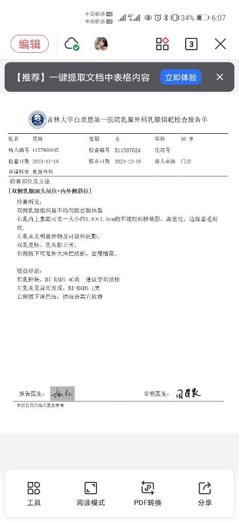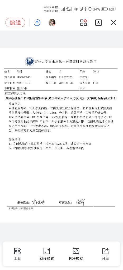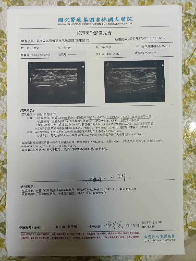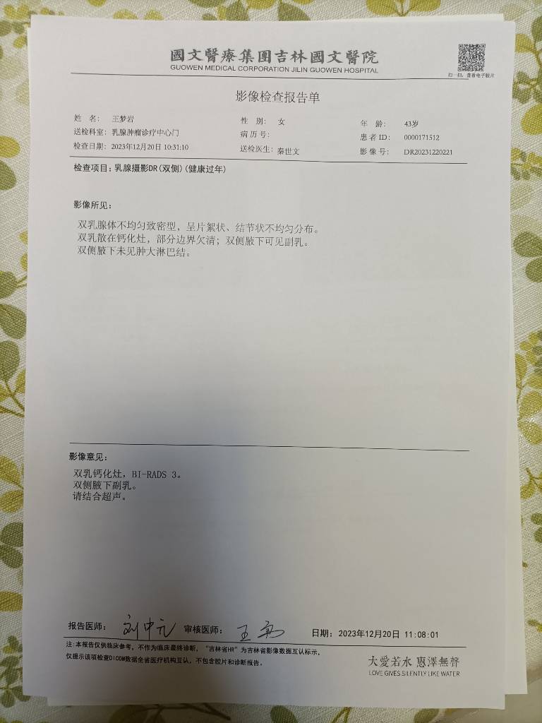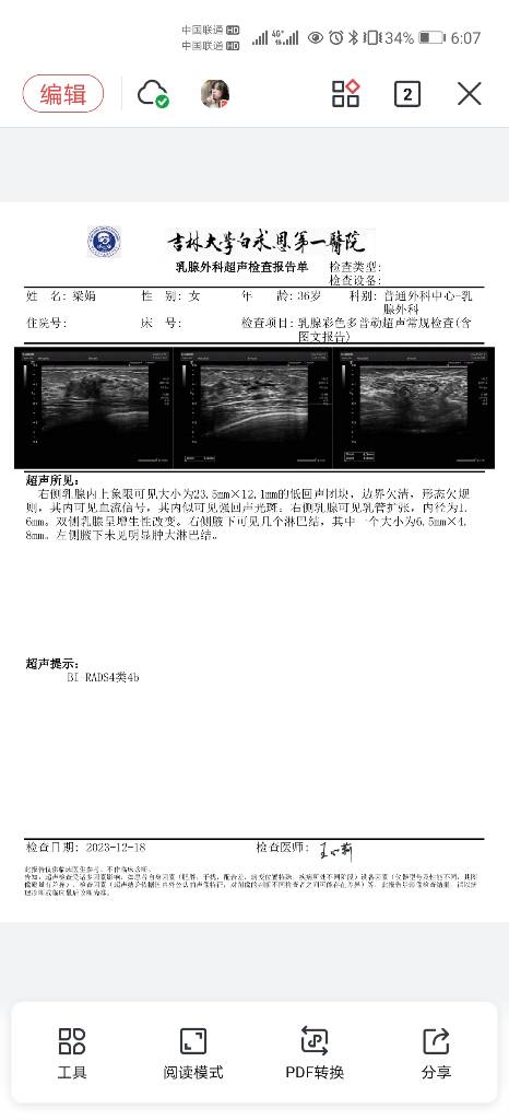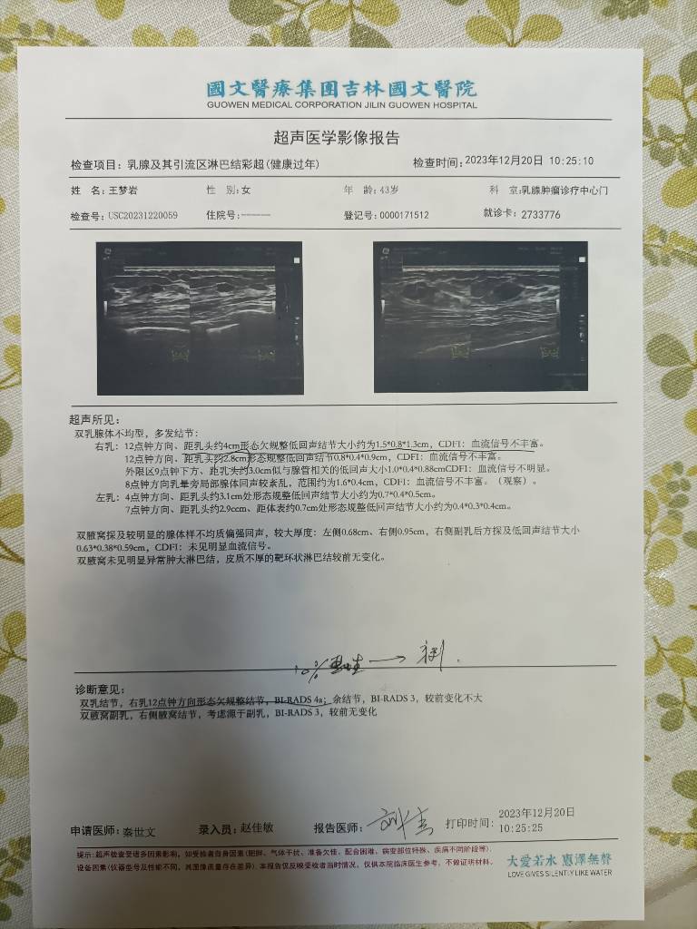 【相关检查】乳腺彩超-本院-乳腺钼靶-病理报告