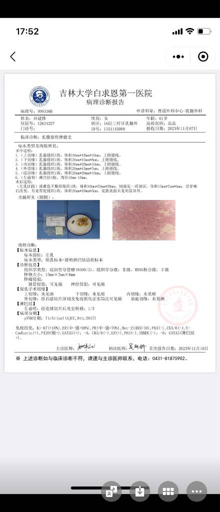 【就诊原因】发现乳房异常-已有病理