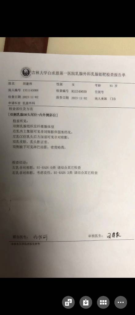 【相关检查】乳腺彩超-外院-乳腺钼靶-病理报告