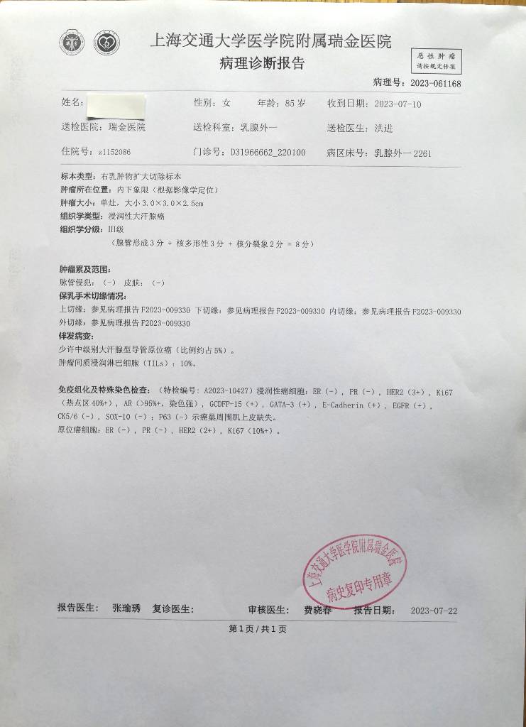 【就诊原因】发现乳房异常-已有病理