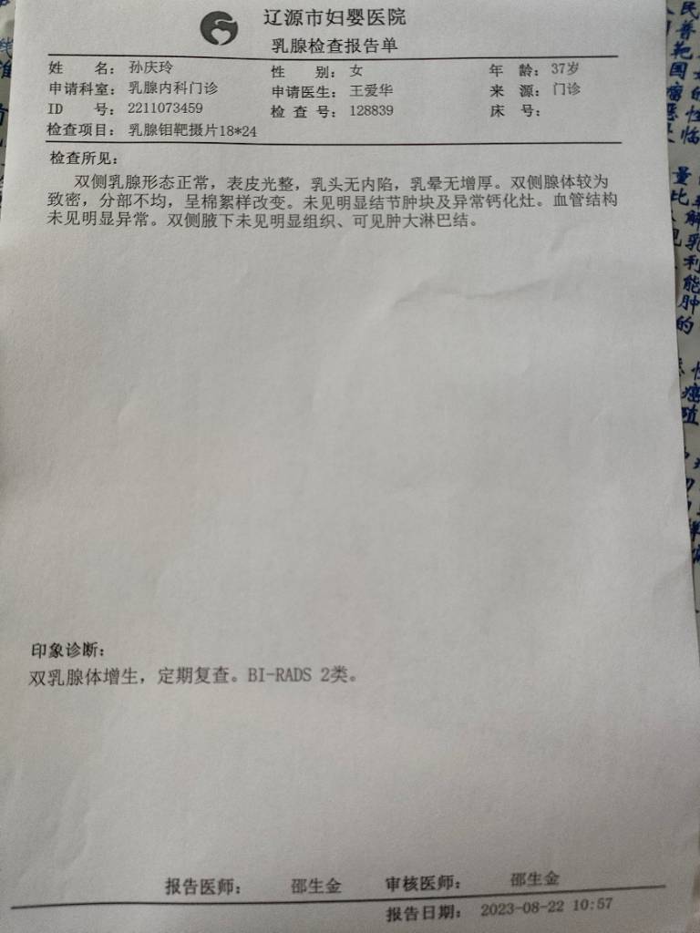 【相关检查】乳腺彩超-外院-乳腺钼靶