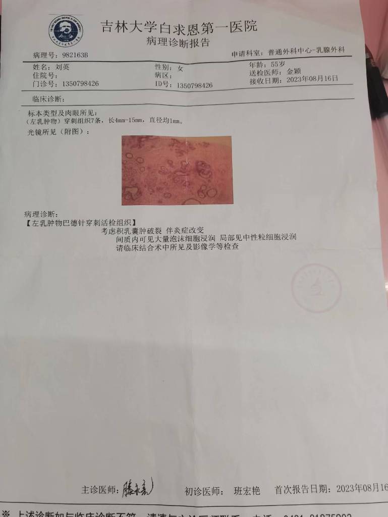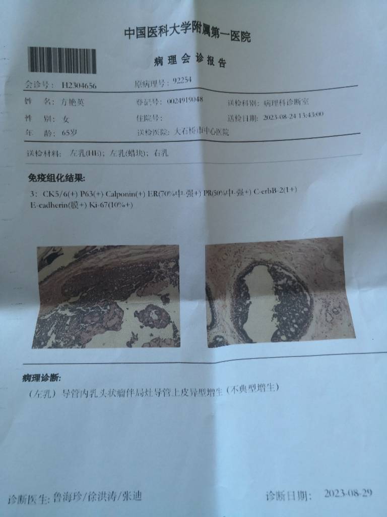 【就诊原因】发现乳房异常-已有病理