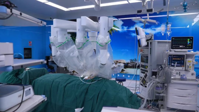 近日长春国文医院应用达芬奇机器人成功开展了复杂结肠造口旁疝无张力修补术