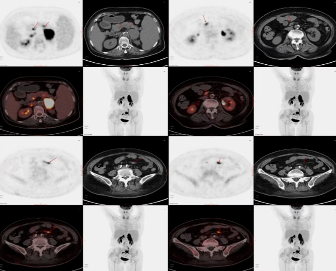 脑、肾上腺、肝……病灶似乎无处不在,却又来源不明。为了揭开这层迷雾,我院迅速组织了多学科会诊,并建议患者进行PET/CT检查,以全面评估全身情况。这一查,果然发现了关键线索:除了已知病灶,PET/CT还清晰地捕捉到腹腔、腹膜后多发淋巴结、腹部静脉乃至骨骼上的多处高代谢灶。